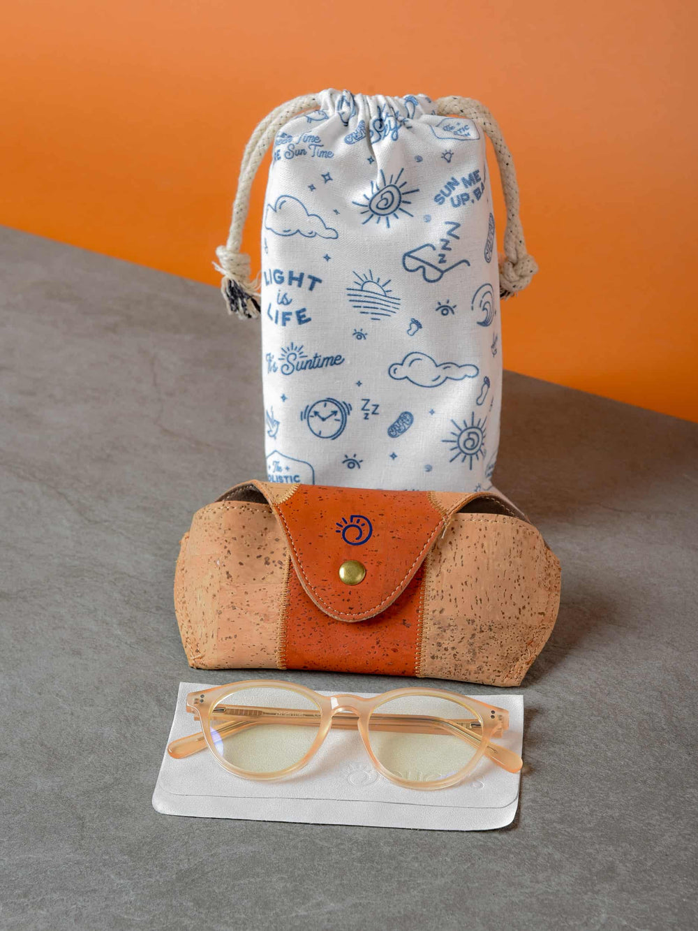 Our case, with its distinctive stripe, is made from Portuguese cork taken from the cork oak tree. This process enhances the tree's ability to absorb CO2, protecting your glasses and the planet. A practical design with a natural feel.